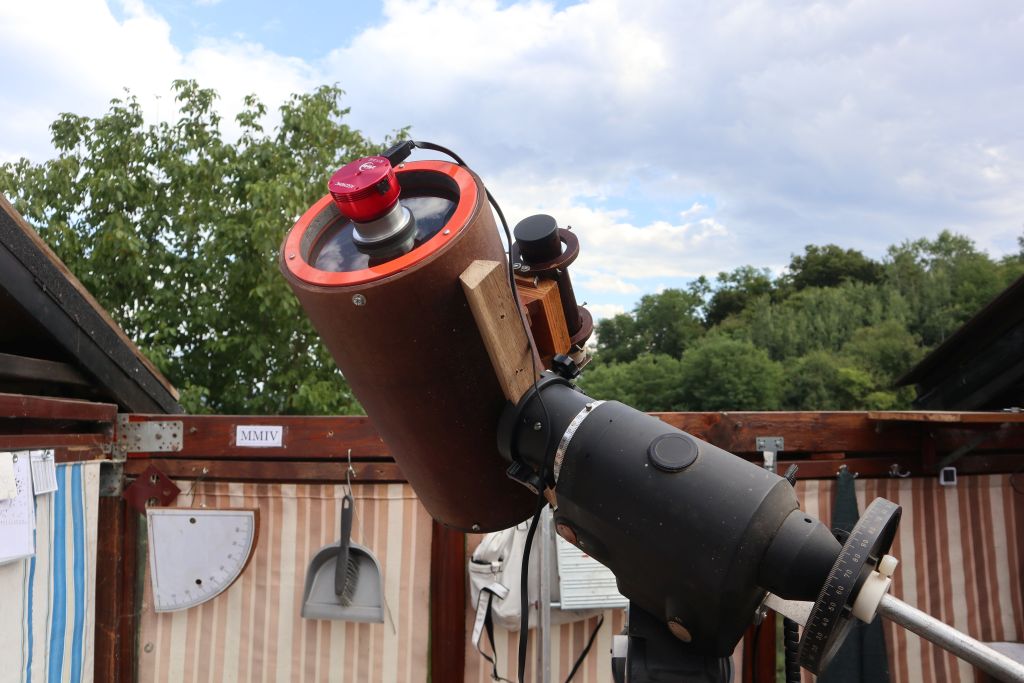 Nakon mnogo igranja pod noćnim nebom, prvo sa ASI290MC kamerom, a kasnije sa EOS M100 digitalnim fotoaparatom, uspio sam donekle najustirati cijeli sistem. Pokazalo se da je preciznost mehanike ovdje kritična, i sad slijedi njeno dotjerivanje, kad uspijem nabaviti aluminij ili sličan materijal za izradu nosača mangin leće (trenutno je od šperploče!), i barem nekog boljeg sistema za izoštravanje koji neće rotirati kameru.