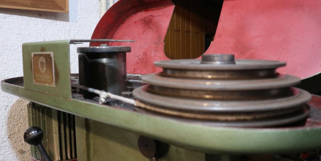 Tako sam dobio manju brzinu, oko 200 o/min i rezanje je išlo puno lakše. Trošio sam oko 2 sata po disku, uz stalno dodavanje brusnog praha i povremeno čišćenje utora u staklu i ruba krune. Kruna se isto polako troši, pa je povremeno (za svaki disk otprilike) trebalo popraviti utore na njenom rubu. I uže se isto polako trošilo, pa sam ga u cijelom procesu rezanja (5 diskova za razne namjene) jednom zamijeno.